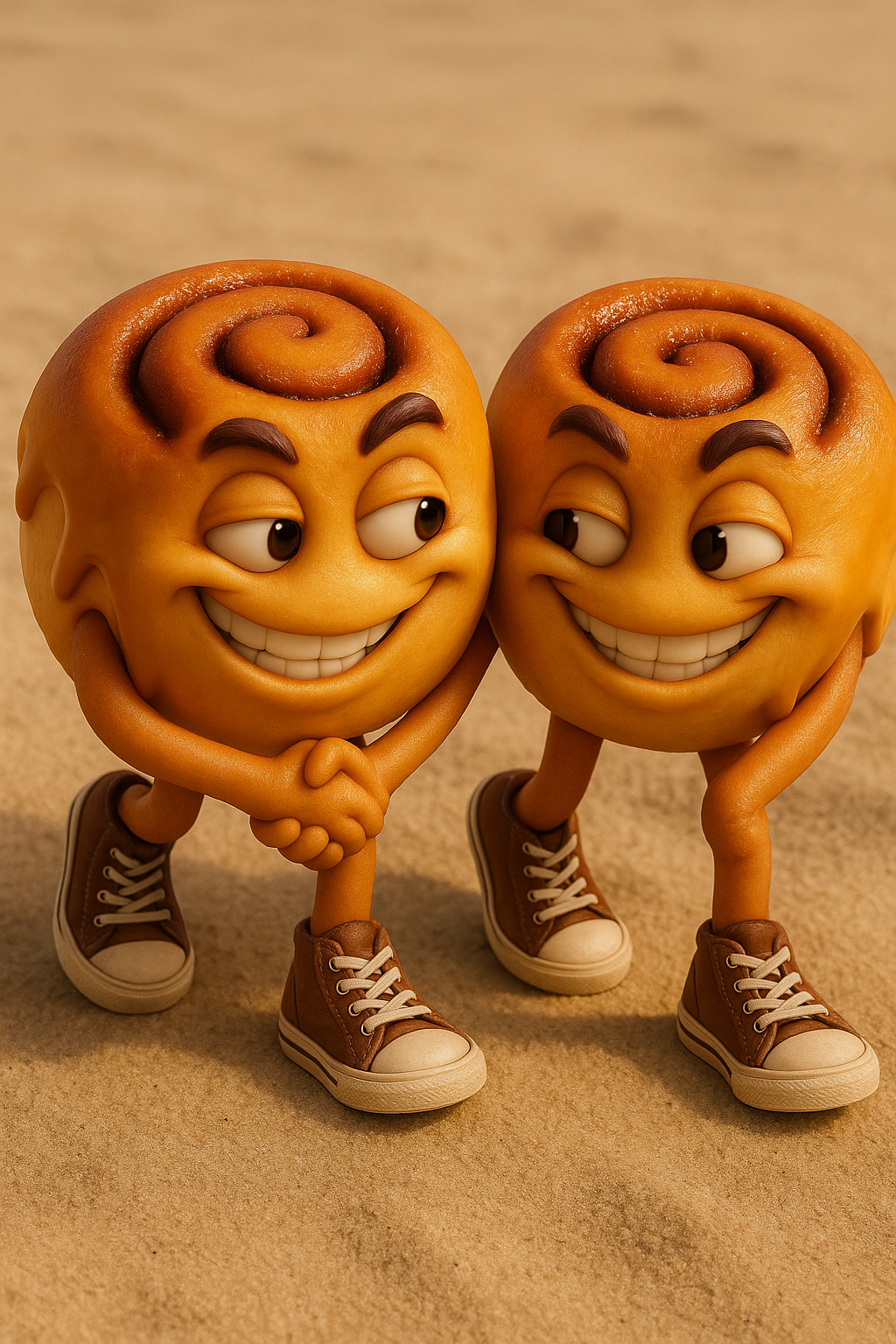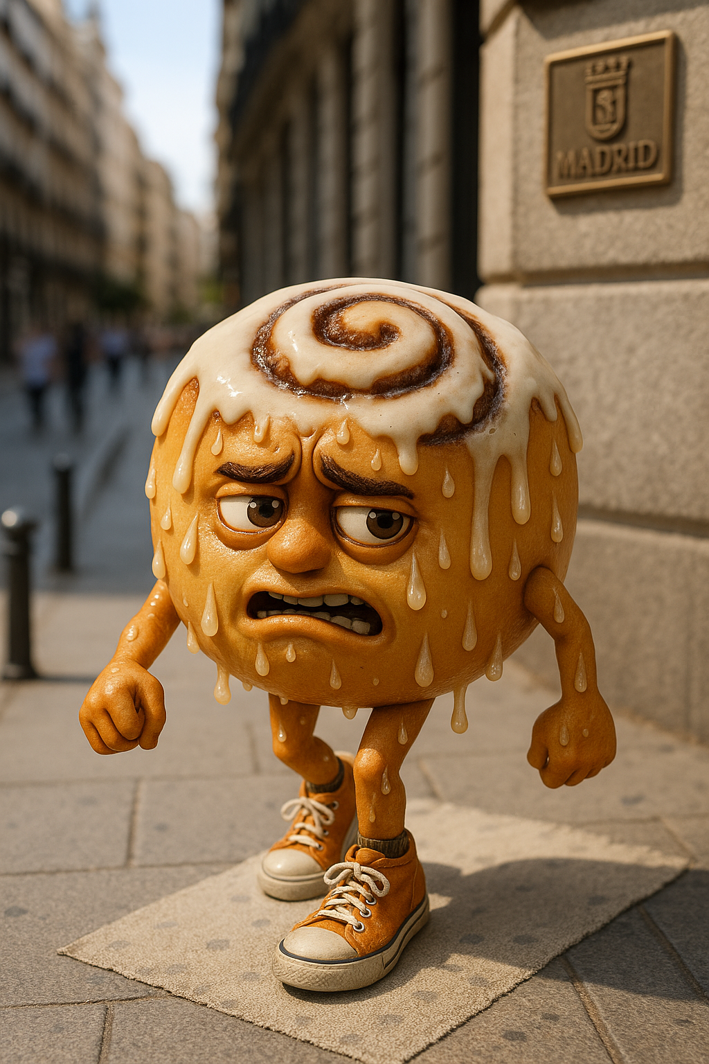 As an experimental exercise, I explored the idea of creating a Rollover mascot using AI. The goal was to push the brand’s playful attitude even further, turning cinnamon rolls into expressive characters with personality and emotions. From chilling at the beach to sweating under the Madrid sun or walking hand in hand, these mascots bring the brand’s guilty pleasure to life in a humorous and relatable way.