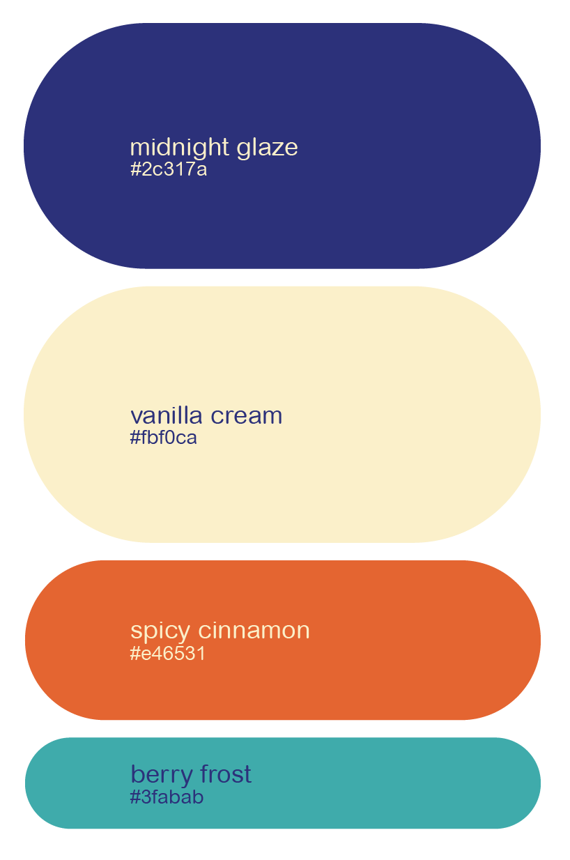 Light, smooth, and comforting. It evokes sweetness and softness, wrapping the brand in warmth while keeping the identity approachable and indulgent