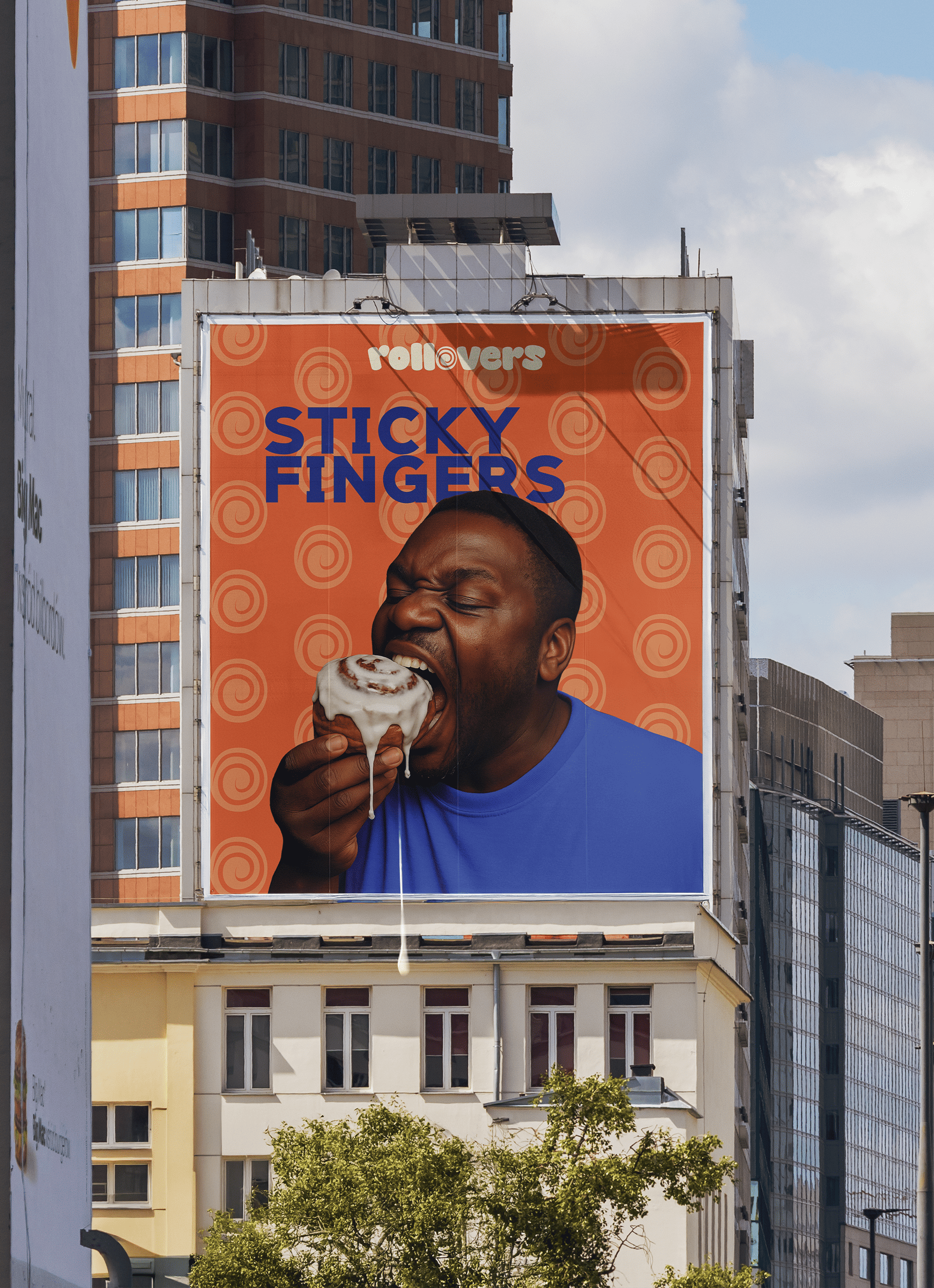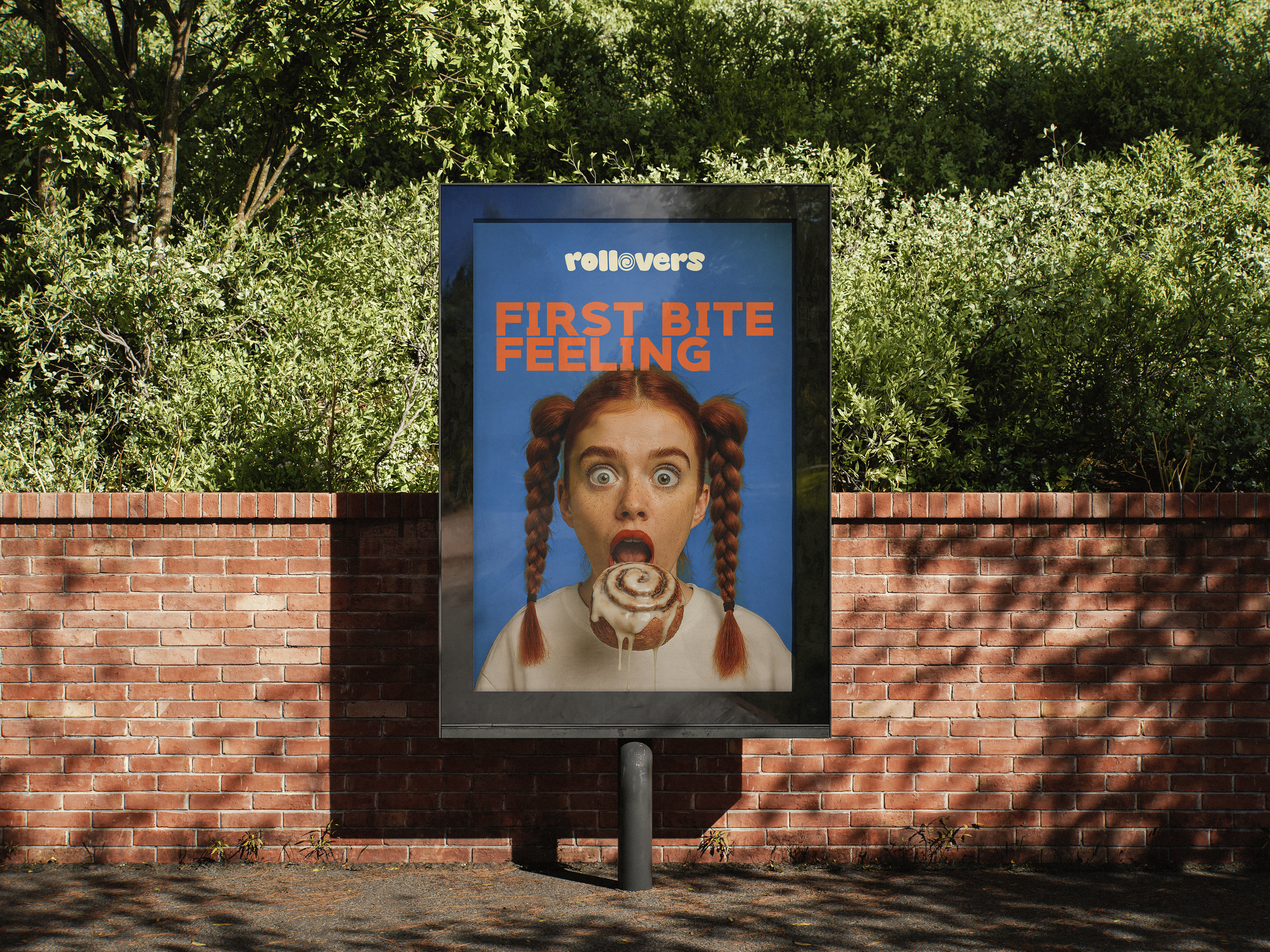 Rollover doesn’t just live inside the store, it takes over the streets. Posters and billboards show real, unfiltered emotions: the messy joy of sticky fingers, the surprise of a first bite, the fun of sharing a roll. These moments make the brand feel alive, playful, and impossible to ignore, turning guilty pleasure into something everyone can relate to.